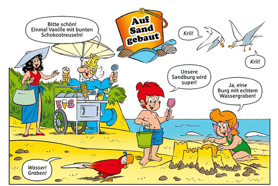Bei so viel Sonne, Strand und Meer möchte man doch am liebsten selbst in die Geschichte eintauchen und mit Didi und Dodo Sandburgen bauen. Klar, dass da auch die Fetzensteiner mitmischen.
