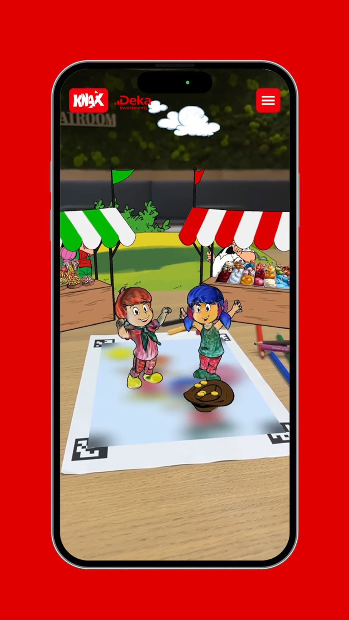 Installiere kostenlos die KNAX-Malzauber-App und scanne dann dein Bild ein. Schon erscheinen deine bunt gestalteten KNAXianer direkt in einer spannenden KNAX-Geschichte. Darin kannst du noch Aufgaben erledigen und bist selbst mittendrin in der KNAX-Welt!