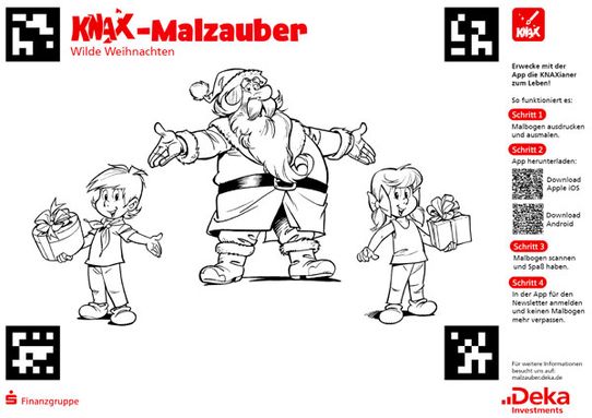 Installiere kostenlos die KNAX-Malzauber-App und scanne dann dein Bild ein. Schon erscheinen deine bunt gestalteten KNAXianer direkt in einer spannenden KNAX-Geschichte. Darin kannst du noch Aufgaben erledigen und bist selbst mittendrin in der KNAX-Welt!
