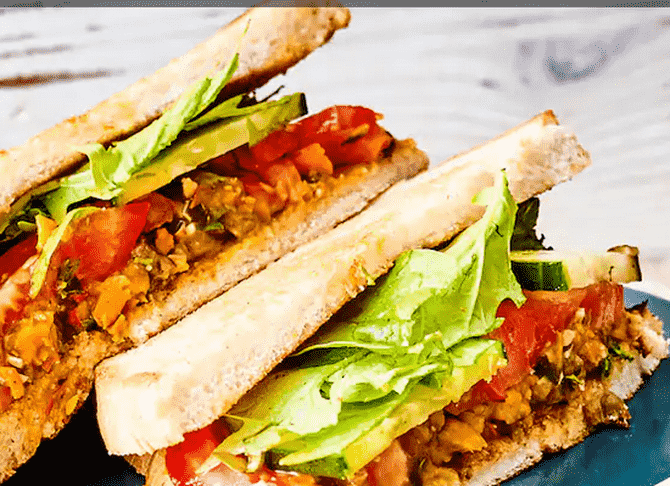 3. Für das Sandwich das Toastbrot toasten und anschließend von einer Seite mit dem Kürbis-Aufstrich bestreichen. Blattsalat, Tomate und Gurke waschen, schneiden und anschließend den Salat zupfen. Alles zusammen auf dem Sandwich verteilen, zuklappen und genießen.