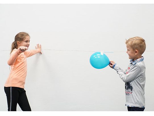 Der Ballon schießt wie eine Rakete die Schnur entlang.