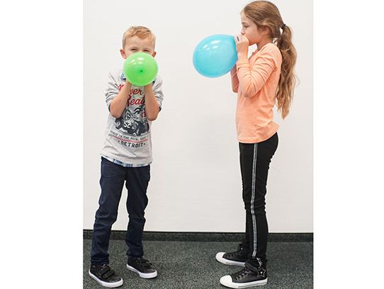 - Blase den Luftballon auf und verschließe das Mundstück mit der Klemme, damit keine Luft entweichen kann.